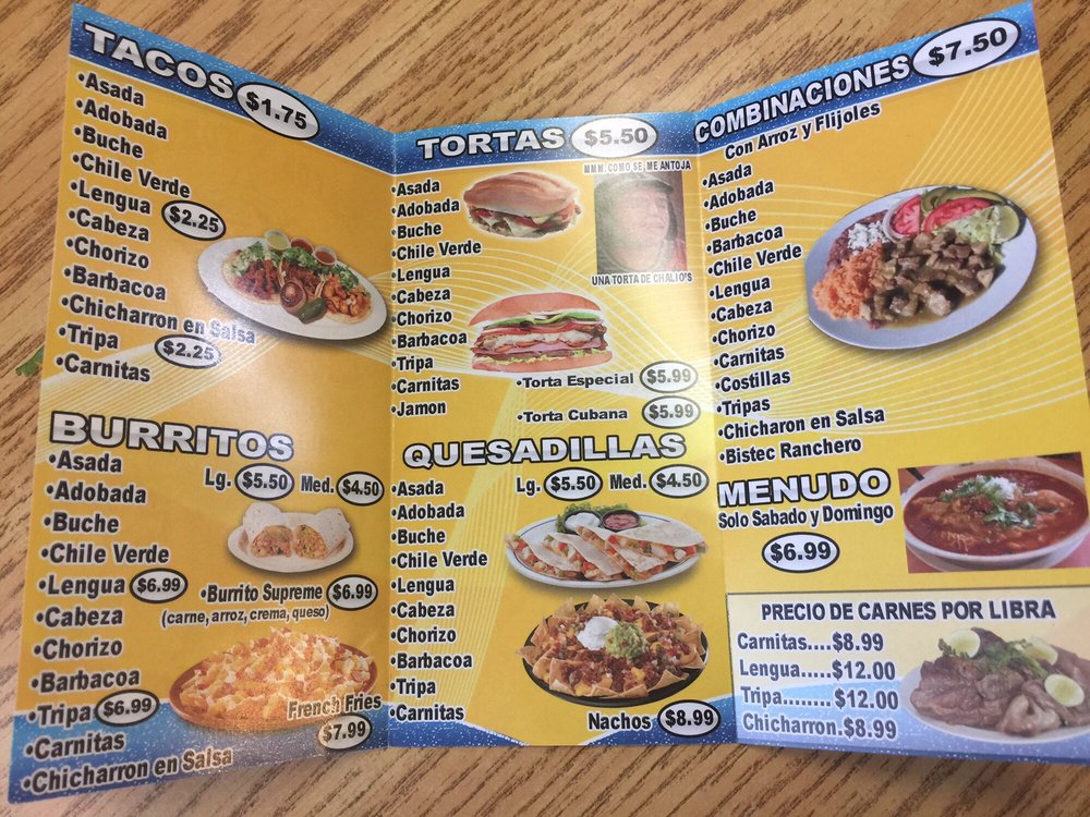 Tacos Y Tortas Chalio's 2 Menu